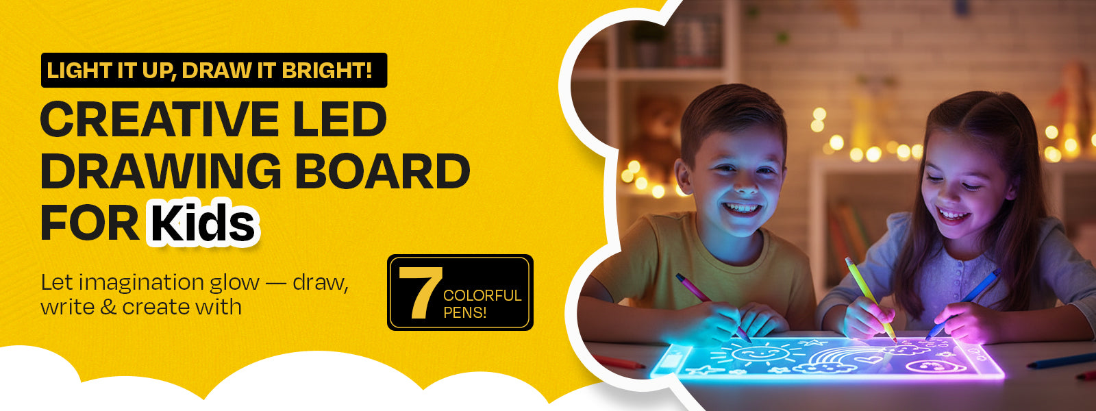 LED Acrylic Message & Drawing Board – Glowing Rewritable Panel with 7 Color Pens